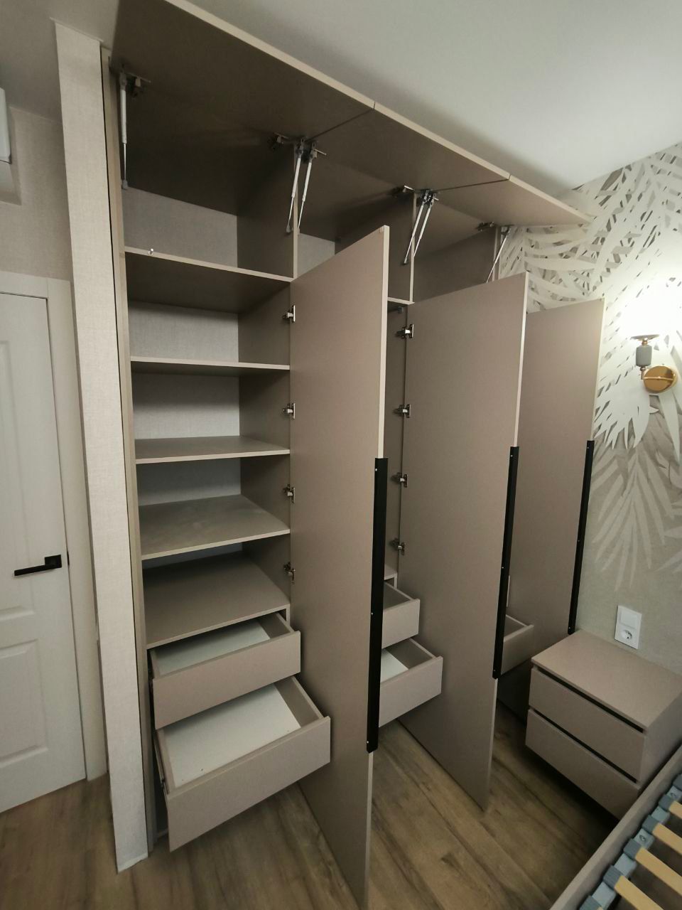 Работает одна и та же бригада мастеров: те, кто приезжают на замер, изготавливают мебель и устанавливают её у вас дома.