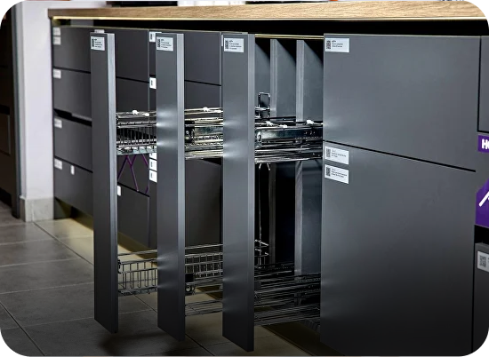 Фурнитура европейских брендов (AG, Hettich) работает плавно, выдерживает тысячи открываний