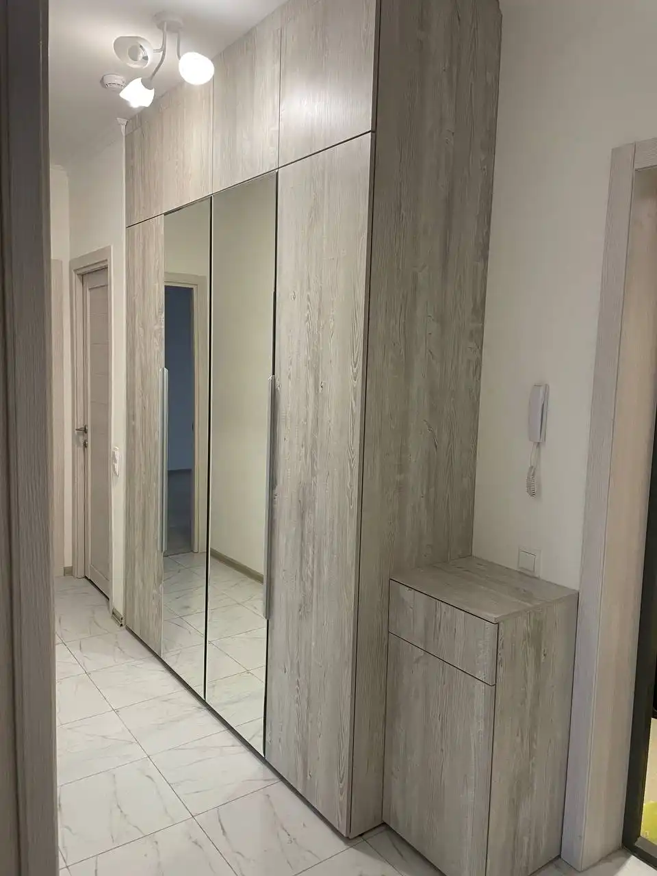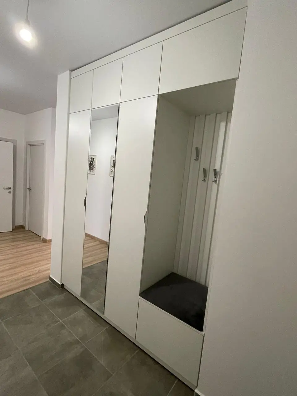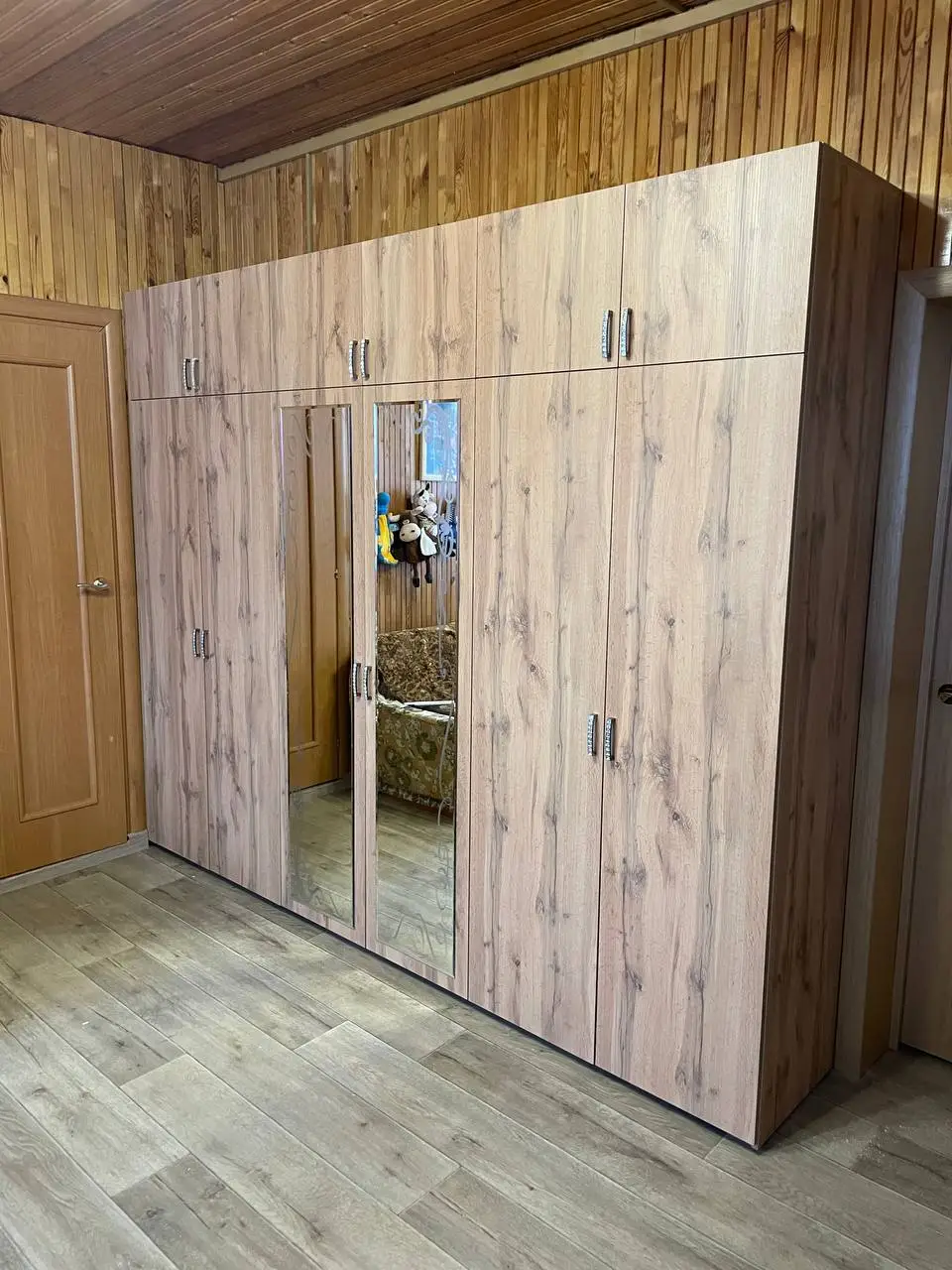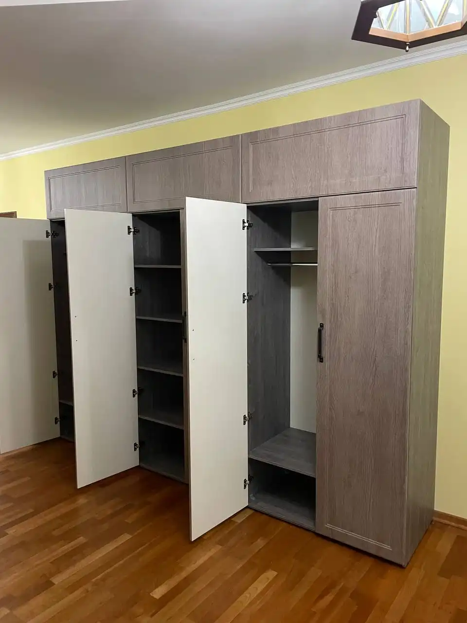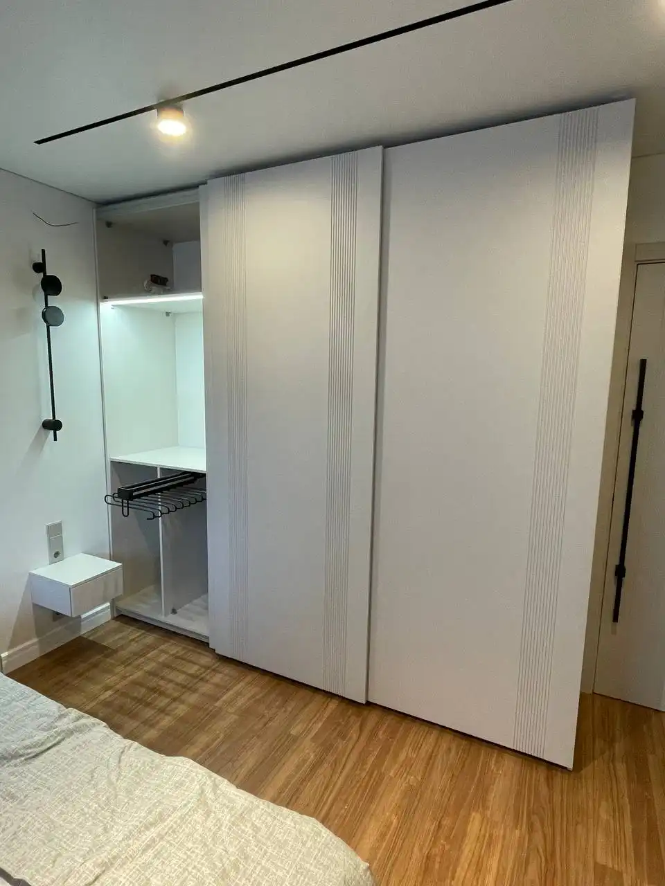 Каждый шкаф мы делаем под конкретное помещение: учитываем реальную высоту от пола до потолка, откосы, трубы и стояки, расположение розеток, открывание дверей соседних комнат. Поэтому шкаф встаёт без зазоров, не «съедает» лишние сантиметры и открывается именно так, как должно быть удобно — а не так, как получилось.